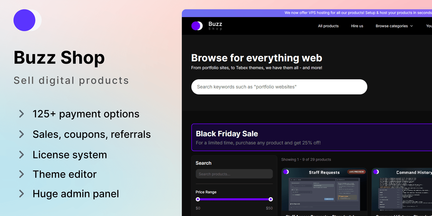 We now offer VPS hosting for all our products! Setup & host your products in seconds. Learn more