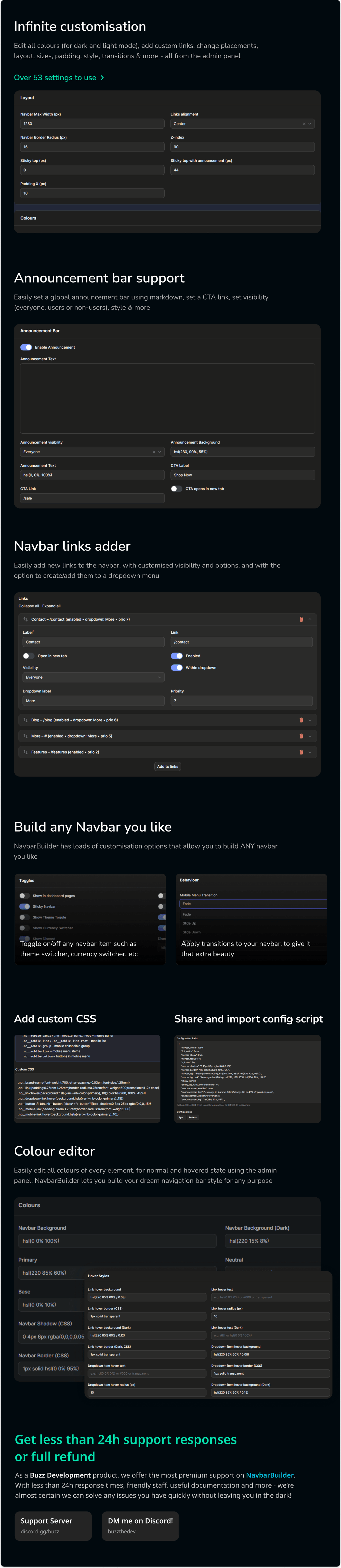 Infinite customisation, custom links support, announcement bar, colours editor & more