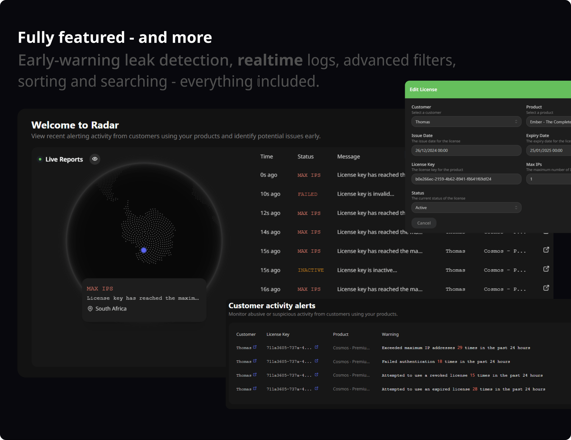 Highly recommended for anyone who is licensing their products. Lets you quickly track and lookup licenses, see any violations of license keys before its too late. Just awesome all around!