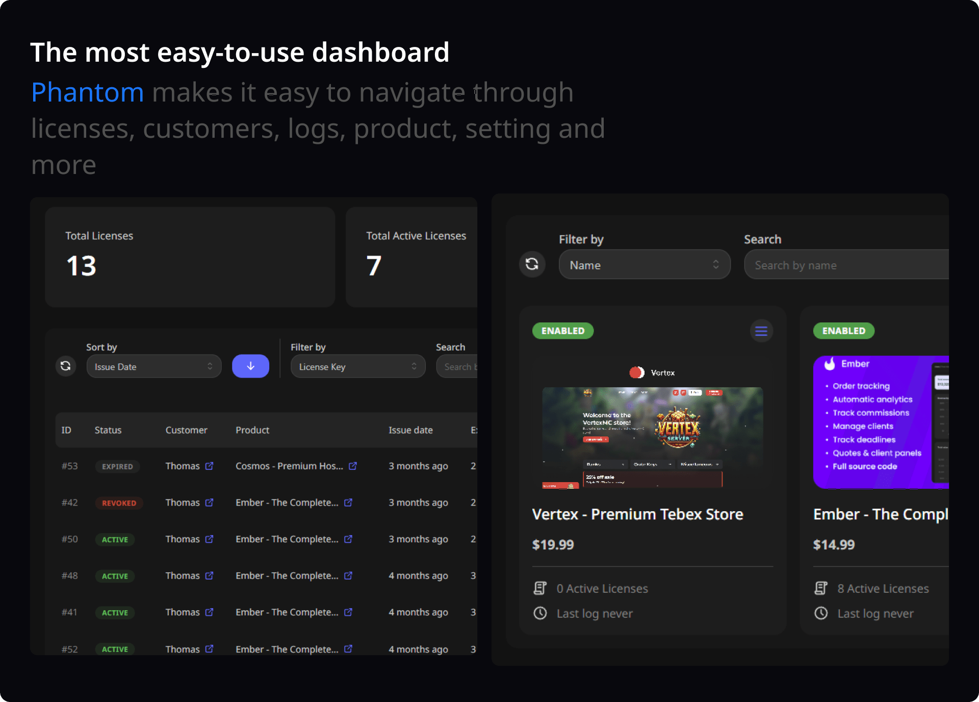 phantom is a great license system for any new company's, it was pretty easy to setup once i got support.
