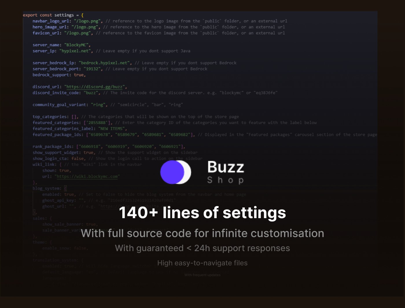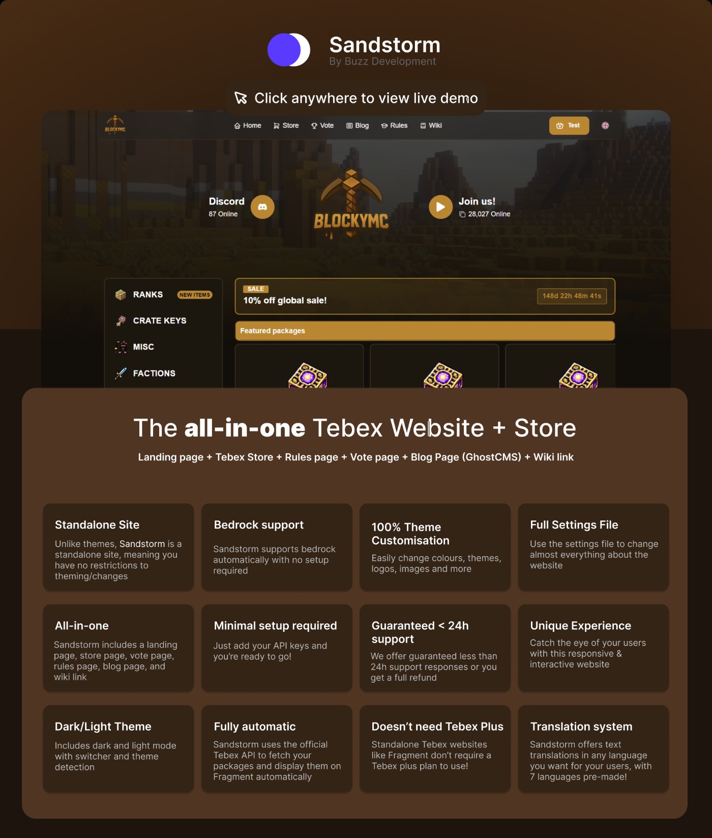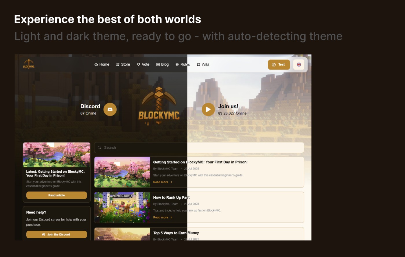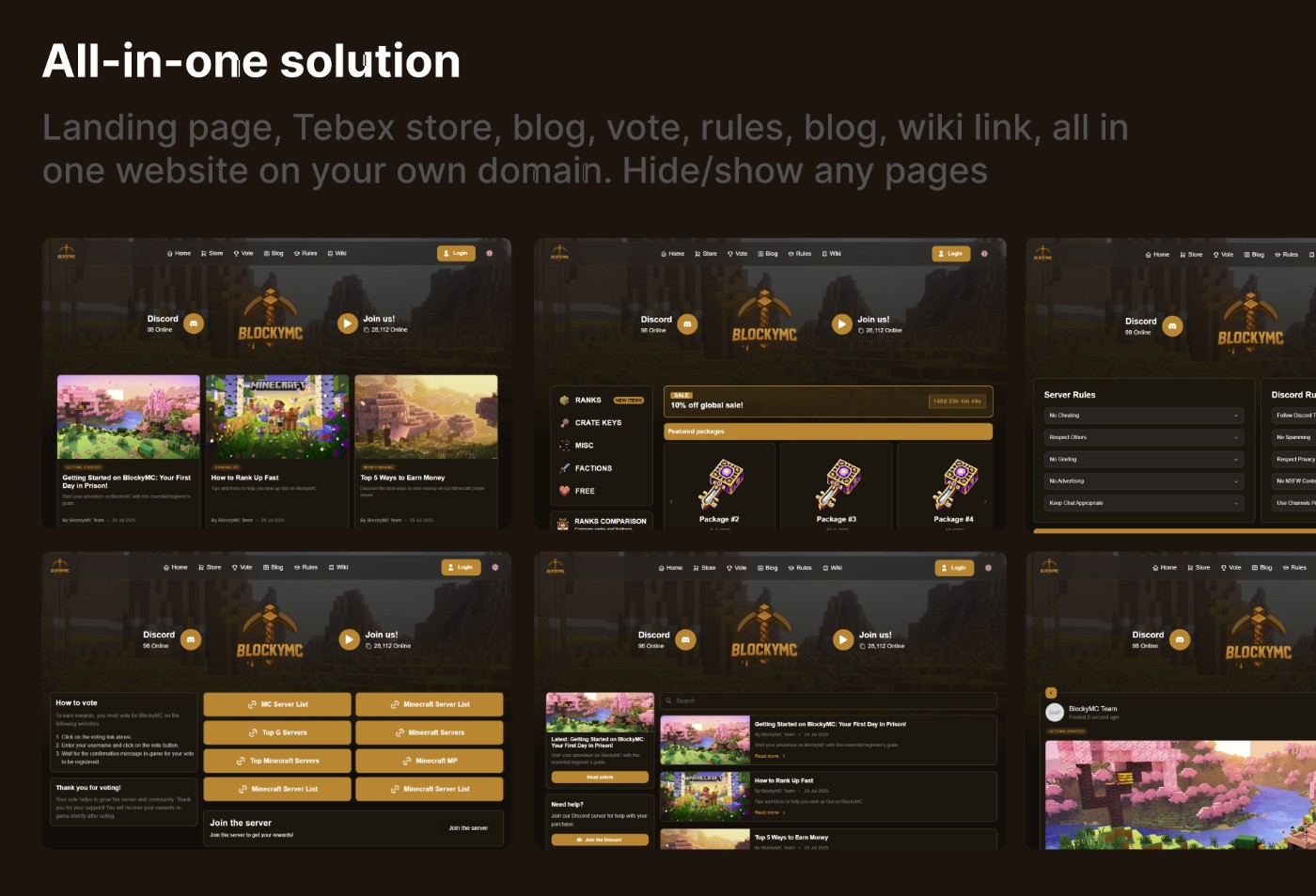 Landing page, store, blog, vote, rules, blog, wiki, all in one website.