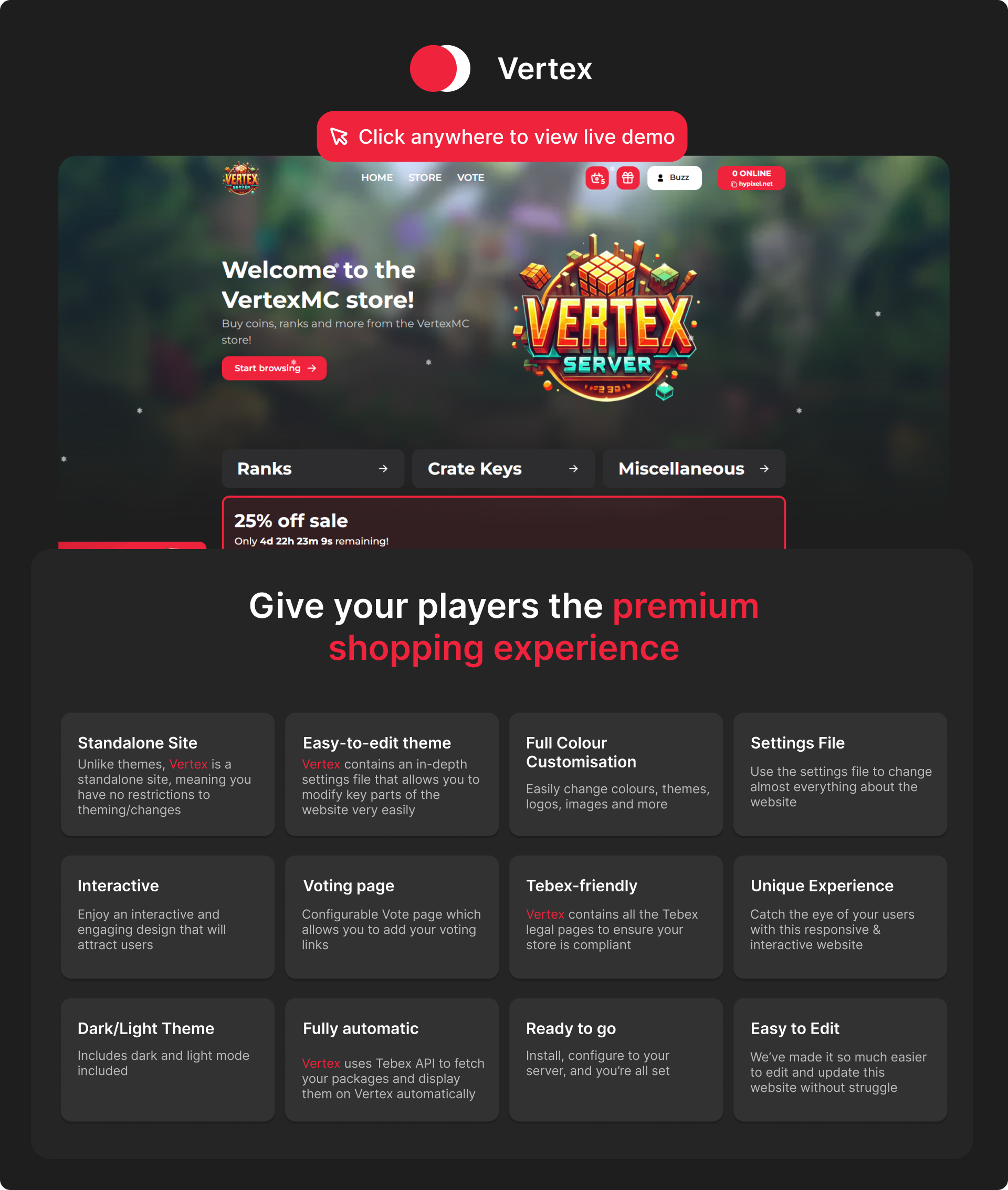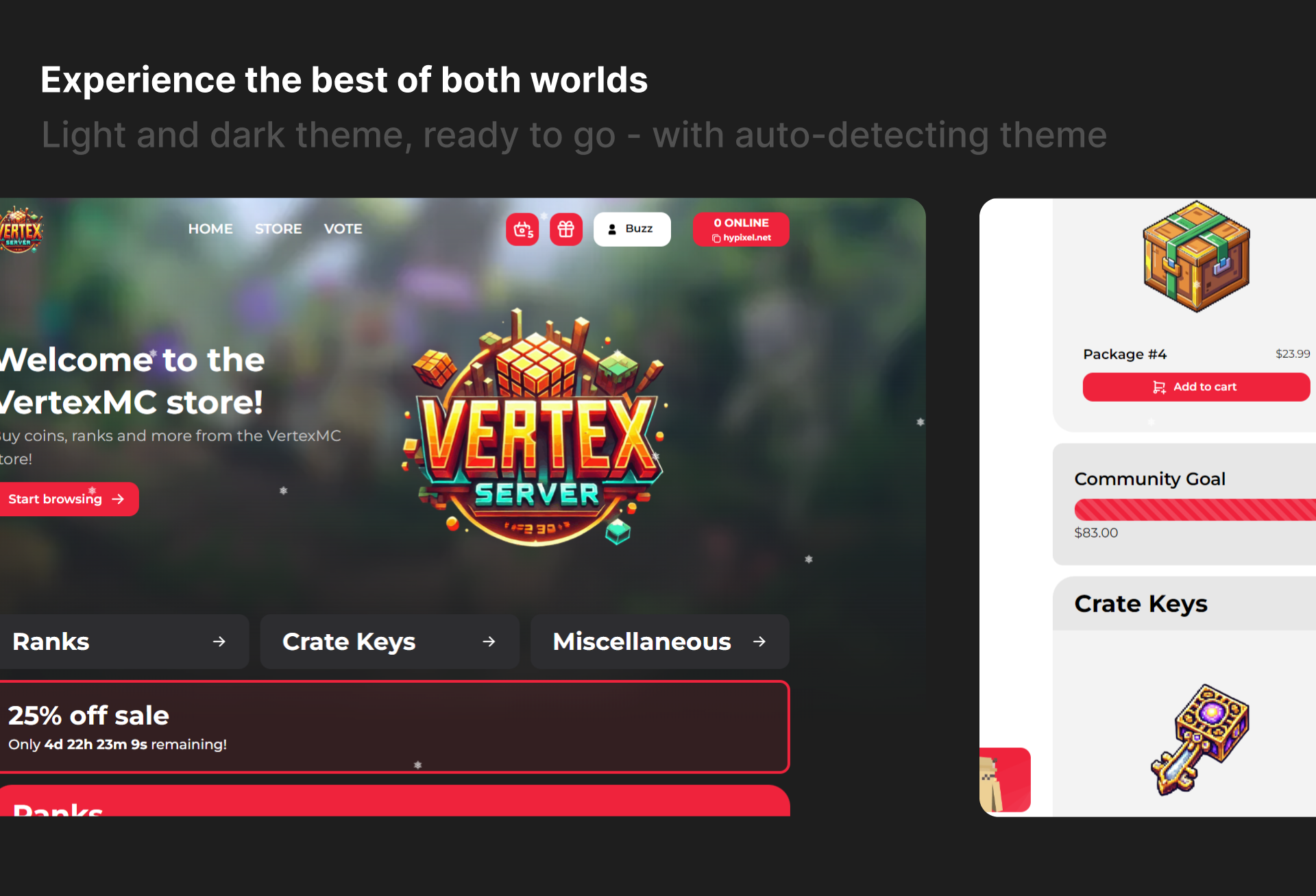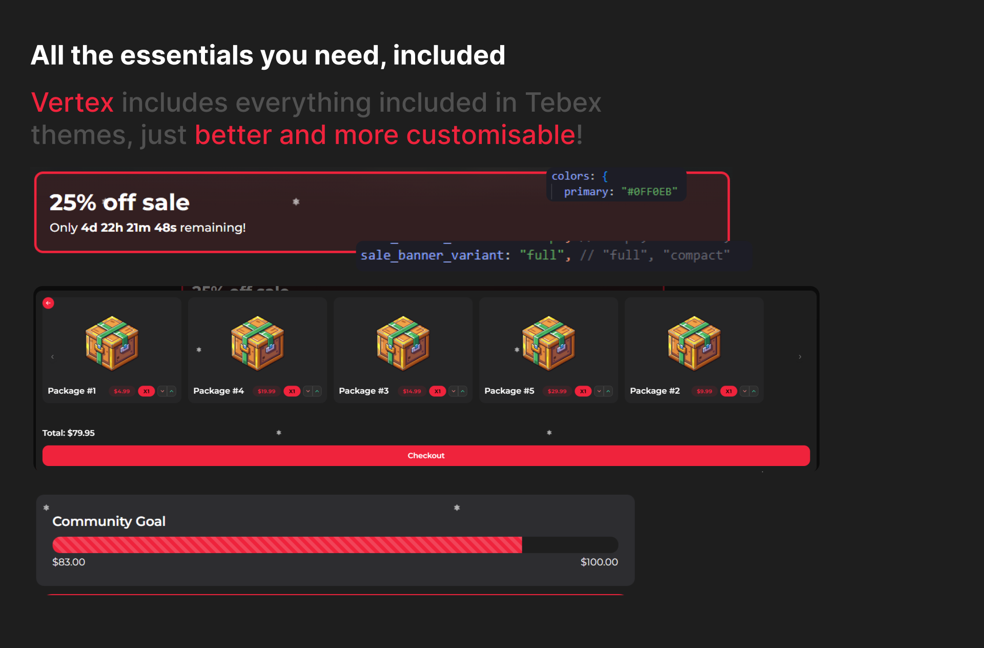 Enjoy everything Tebex themes have, but bigger and better - without needing Tebex Plus Plan!
